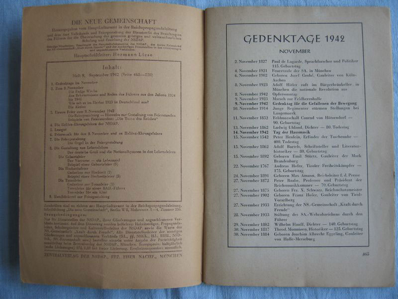 Den tyske hæfte fra 1942 for det nye fællesskab. Sammendrag af forskellige sange, digte, vigtige dato, begivenheder mm.