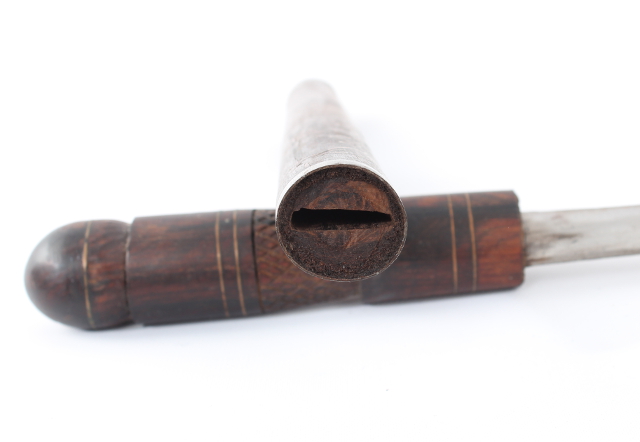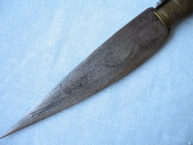 Vi fik tip et det er tale om en Samburu kniv, fra samburustammen i det nordlige Kenya. Knivens originalitet er ukendt indtil videre. Pæn stand.