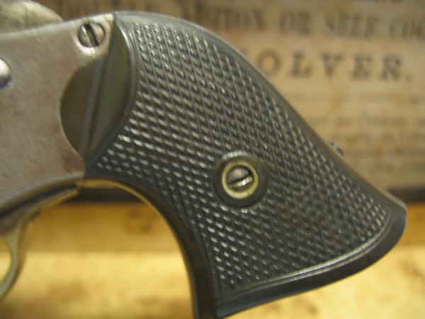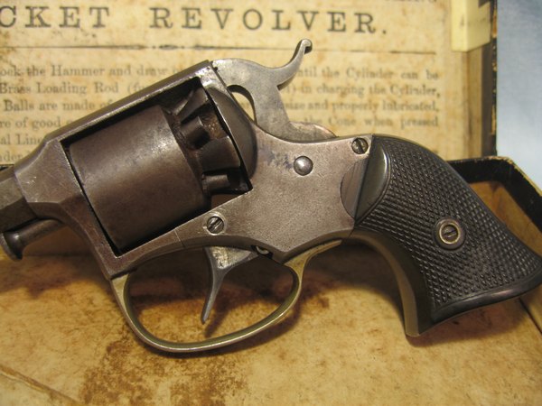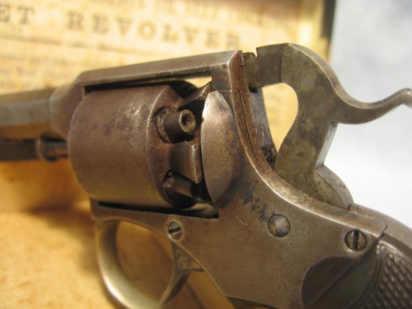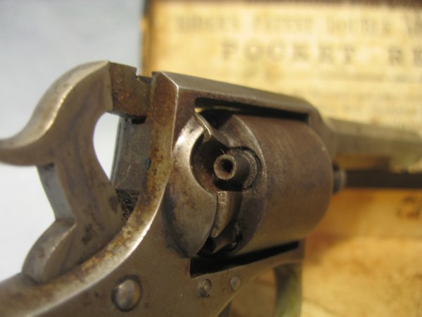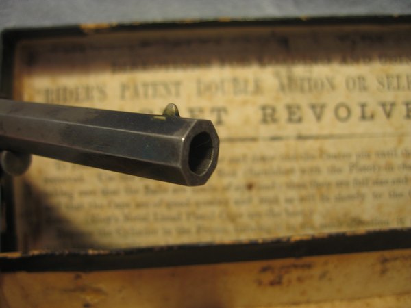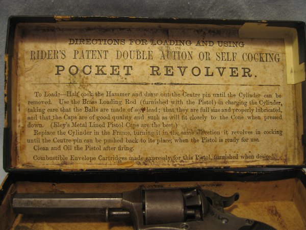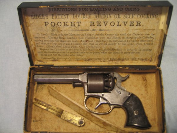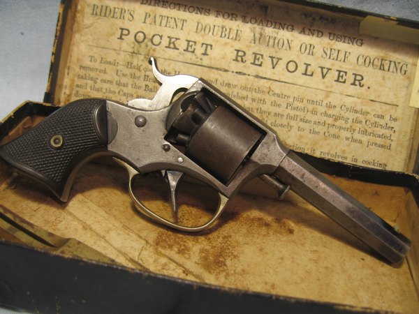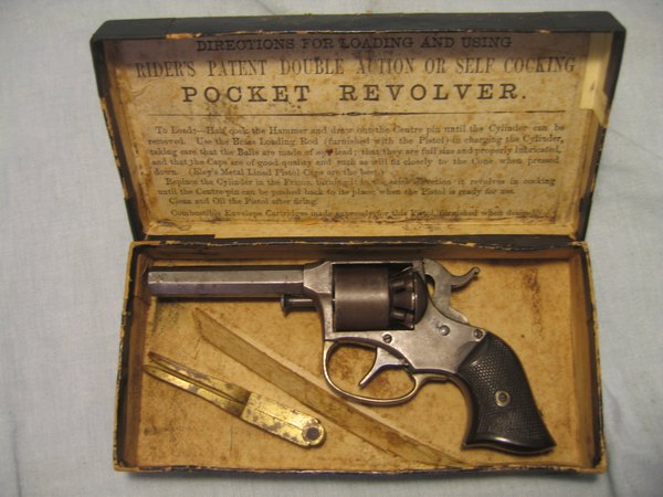 Remington Rider model DA5 i en original æske med kugletang. Revolver er i pæn stand, virker som den skal. Skæfter er uden slog - mærker, hvilket er sjældent. En lille god revolver med tilbehør, som er svært at få fat i. .